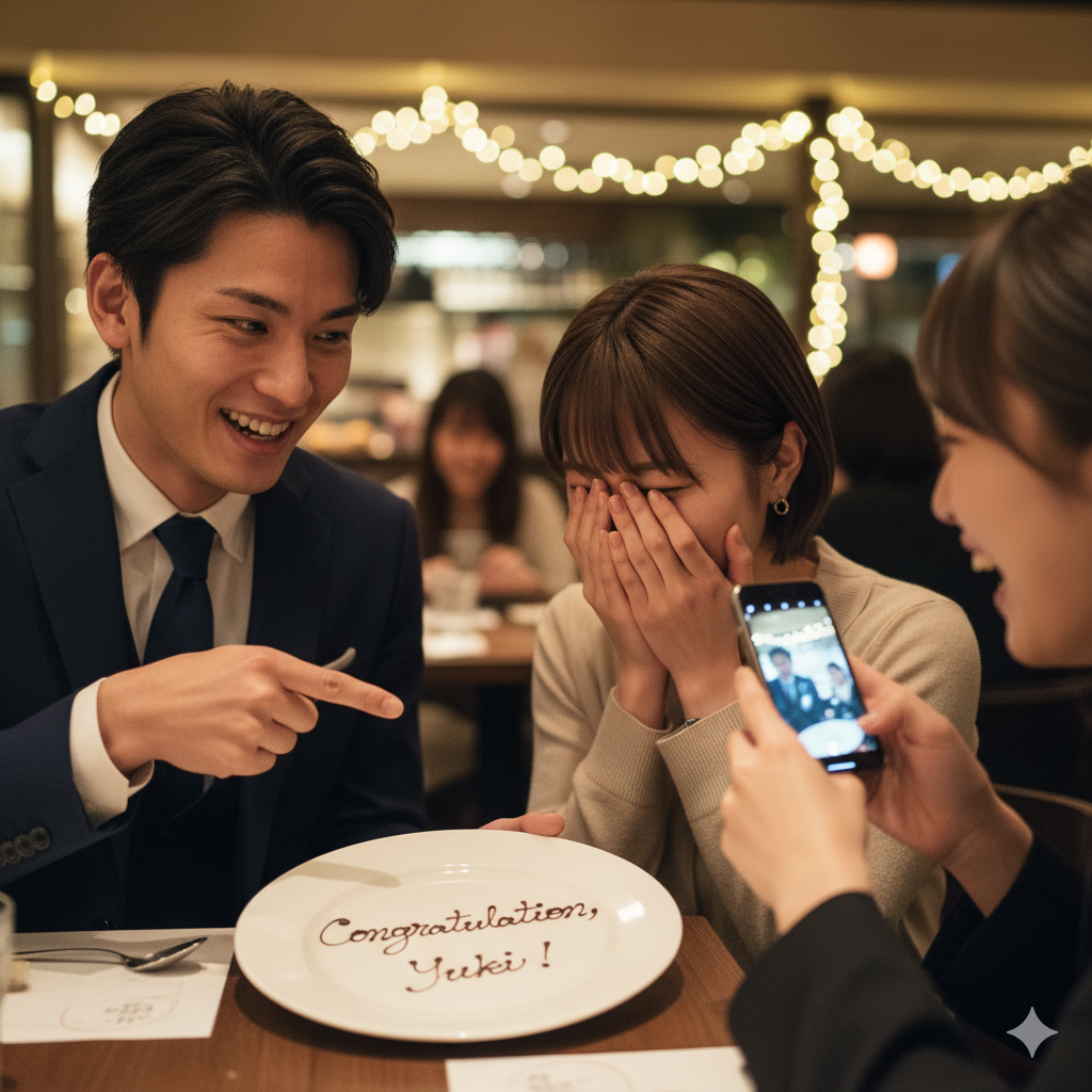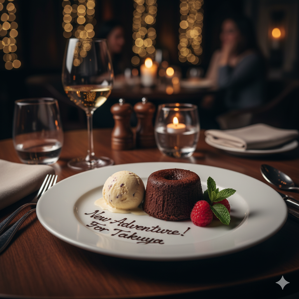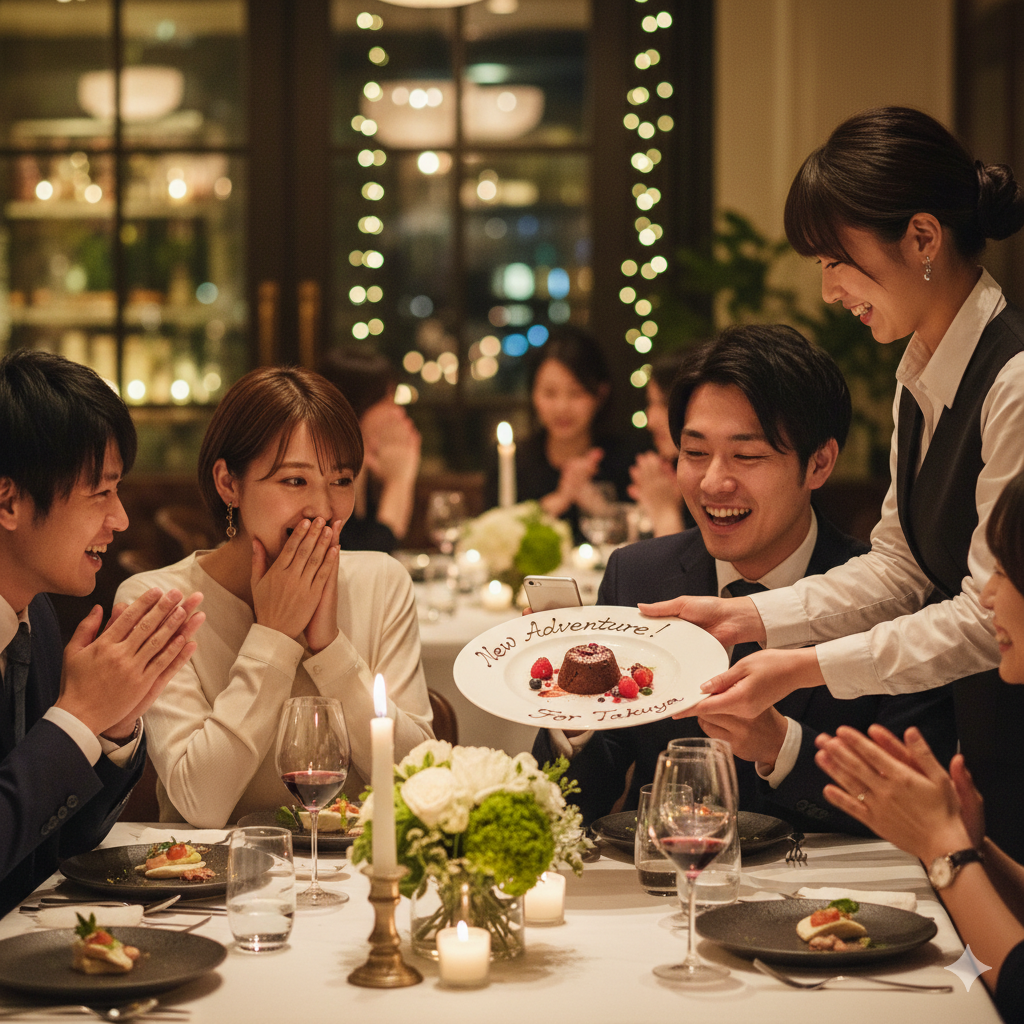 一番確実なのは、紙に書いて渡すこと。もしWeb予約や電話予約なら、お店の予約確認メールやLINE(もしあれば)に、「プレートのメッセージは『Congratulations, Kenta!』でお願いします」とテキストで返信しておくと、間違いが起こりません。 - 出すタイミングを打ち合わせる: