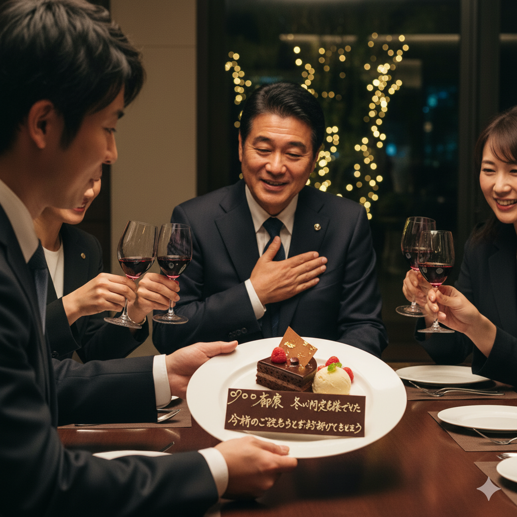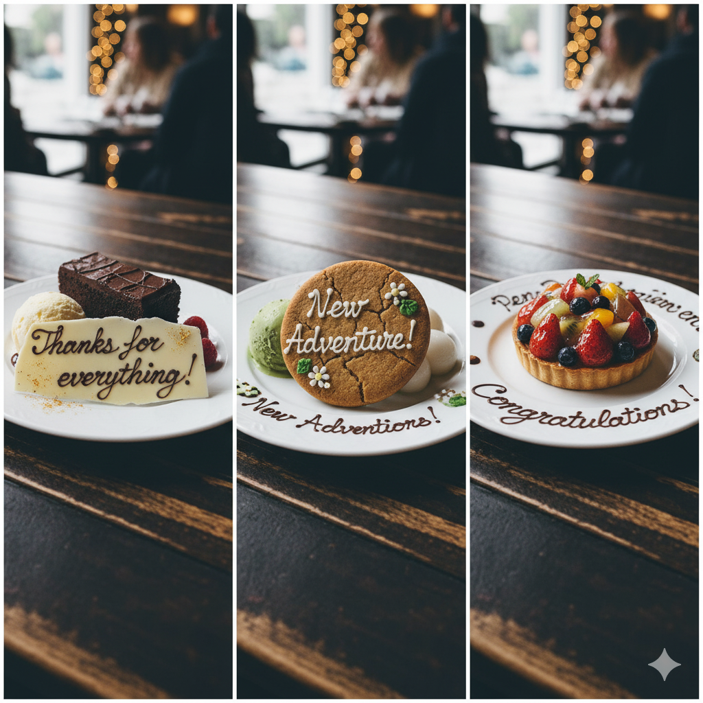 「当日、デザートを頼む時に言えばいいや」はほぼ100%失敗します。パティシエの手が空いていなかったり、プレートの在庫がなかったり…。必ずお店を予約する段階で、「転職祝いでメッセージプレートをお願いしたい」と明確に伝えてください。 - 文字数制限とプレートのサイズを確認する: