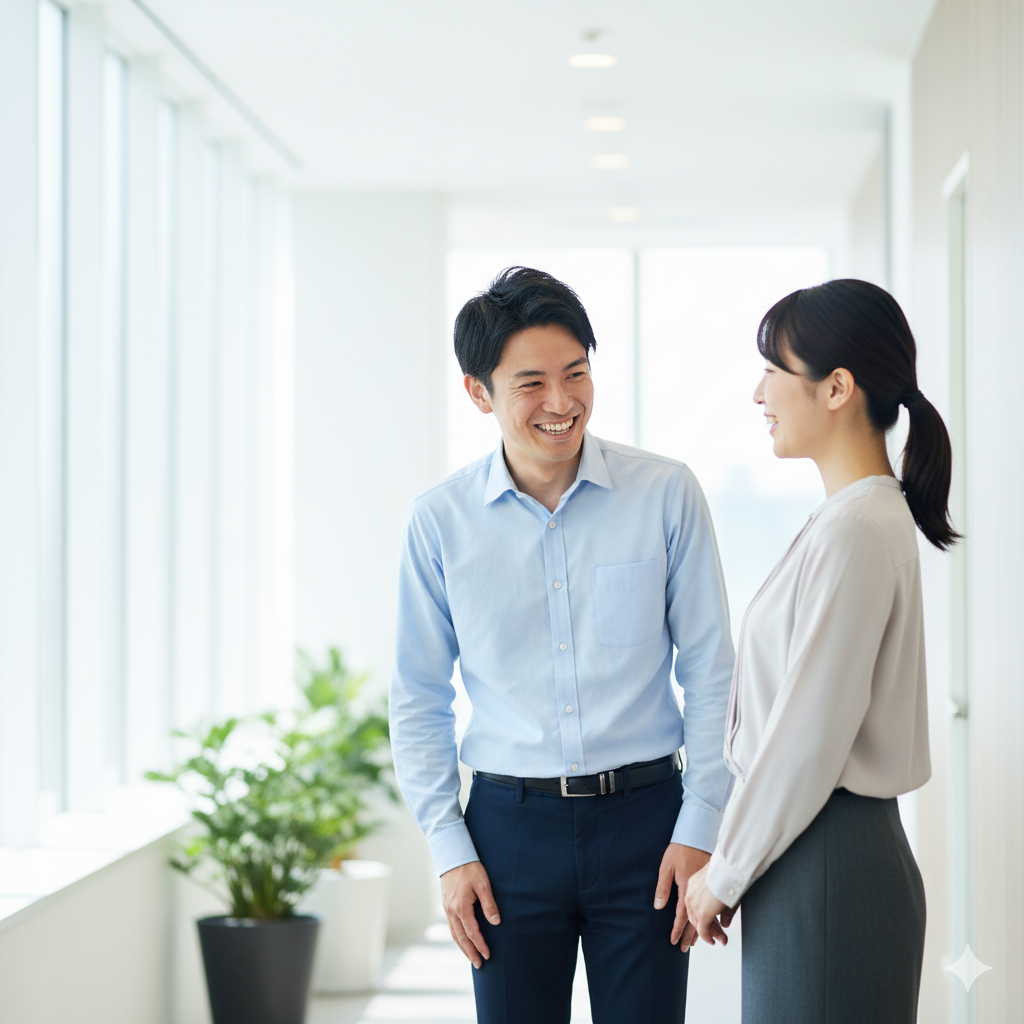 - 挨拶だけは元気にする:雑談の輪に無理に入らなくても大丈夫。「おはようございます」「お疲れ様です」の声かけだけはハキハキと。