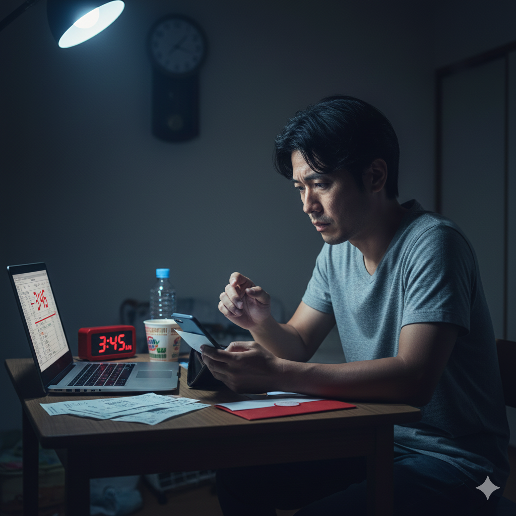 一方で、デメリットとして絶対に目を逸らしてはいけないのが経済的な不安です。会社を辞めれば当然、毎月の給料はストップします。貯金残高が日に日に減っていく通帳を見るのは、想像以上にメンタルに来るものがあります。「お金がない」という事実は、人の判断力を容易に狂わせます。