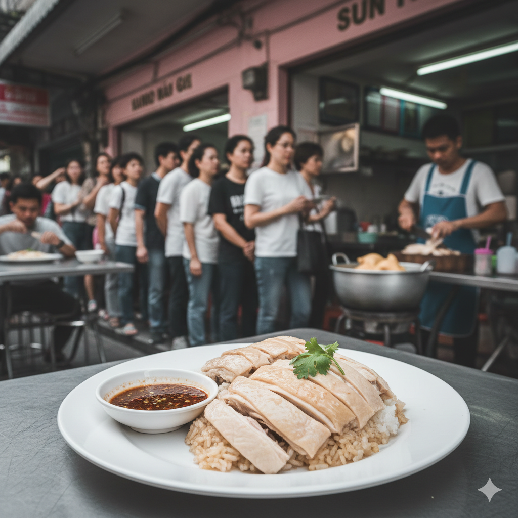 タイのご飯で有名な鶏飯「カオマンガイ」を食べるなら、プラトゥーナム地区にある「ラーン・ガイトーン・プラトゥーナム(通称:ピンクのカオマンガイ)」は外せません。しっとりした鶏肉と、鶏の出汁で炊き上げられたご飯のコンビネーションはまさに芸術。並びにある「クワンヘン(通称:緑のカオマンガイ)」と食べ比べをするのも楽しいですよ。ランチタイムは混雑するので、少し時間をずらして訪れるのがコツかなと思います。