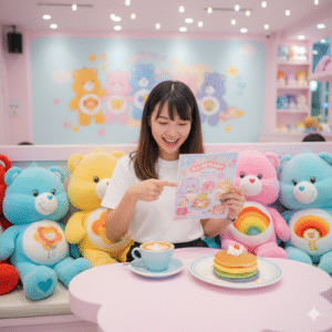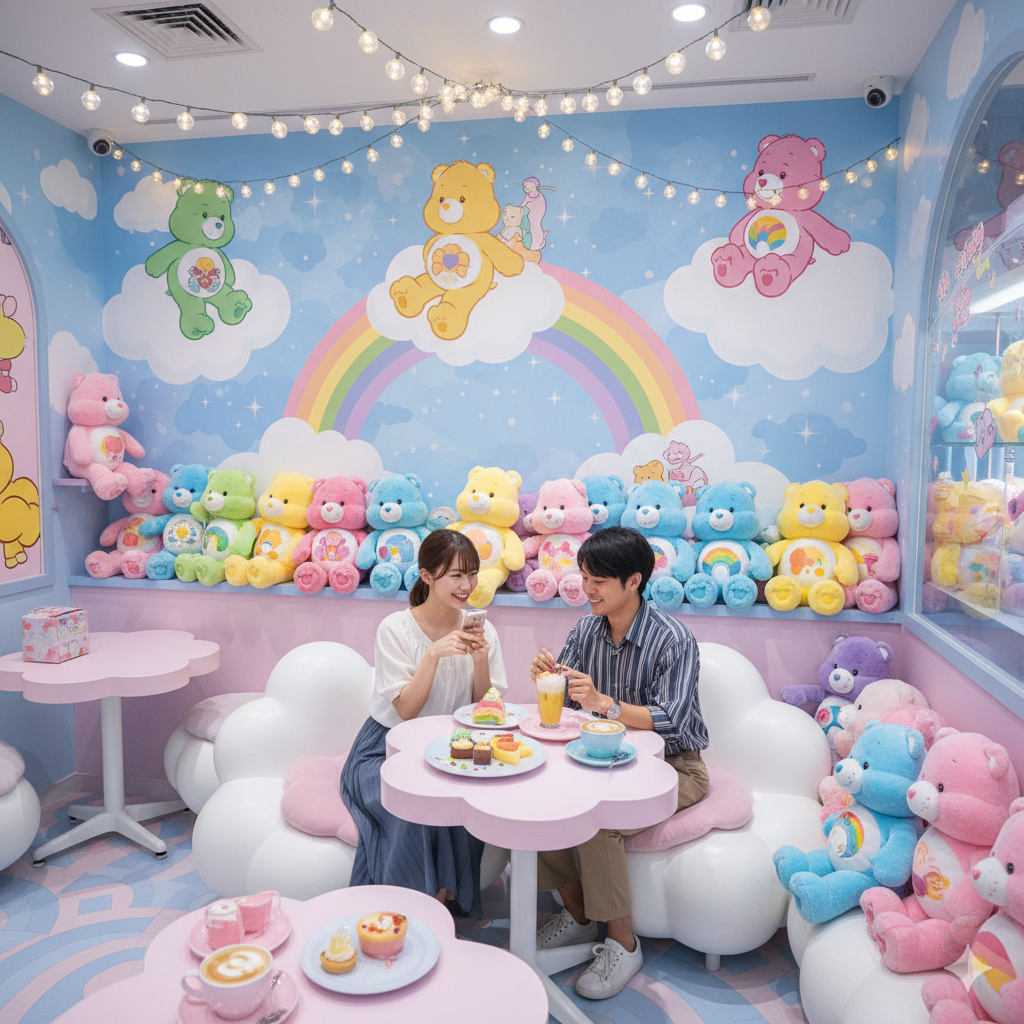 バンコクのケアベア カフェに一歩足を踏み入れると、そこはまさに「ケア・ア・ロット」の世界。壁一面に描かれた可愛いケアベアたちのカフェイラストが、訪れる人々を温かく迎えてくれます。