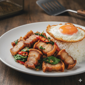 バンコクには、『ドゥンムーグローブ』のようにムーグローブを専門に扱うお店もあり、そうしたお店のガパオは格別です。厚みのあるムーグローブは、外はカリカリでありながら、中の肉は驚くほど柔らかく仕上げられています。この食感のコントラストが、一度食べるとやみつきになること間違いありません。