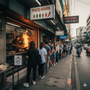バンコクで「ガパオライスの有名店」と聞けば、多くの人が『Phed Mark(ペッドマーク)』の名前を挙げるでしょう。BTSエカマイ駅から徒歩数分という好立地にあり、連日多くの地元民や観光客で行列が絶えない超人気店です。
