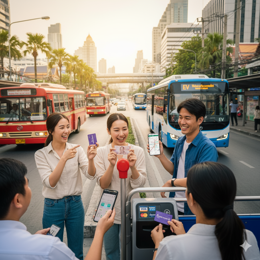 近年、バンコクでは環境に配慮した電気(EV)バスの導入が急速に進んでいます。これらの新しいバスは、支払い方法も現代的になっているのが特徴です。