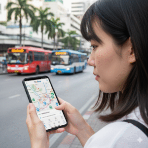 バンコクのバスを乗りこなす上で、今や絶対に欠かせないのが「ViaBus(ビアバス)」という無料のスマートフォンアプリです。このアプリ一つあれば、複雑なバス路線を簡単に攻略できます。