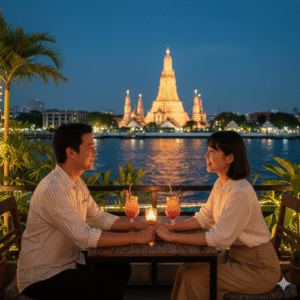 例えば、チャオプラヤ川沿いにある「Above Riva」は、対岸のワット・アルン(暁の寺)のライトアップを望める絶好のロケーションでありながら、比較的落ち着いて過ごせることで知られています。こうした穴場スポットは、混雑を避けてゆっくりと静かな時間を過ごしたいカップルや、バンコクの新たな魅力を発見したいリピーターに特におすすめです。