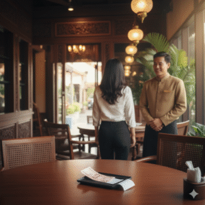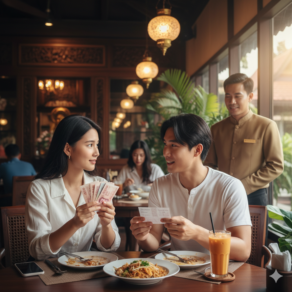 ただし、サービス料が含まれていても、お釣りの端数をチップとしてテーブルに残していくのがスマートな習慣とされています。例えば、会計が980バーツで1000バーツ札を出した場合、お釣りの20バーツをそのまま置いていく、といった形です。