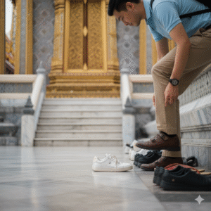 日差しが強いタイでは、観光中の帽子は必需品です。しかし、寺院の敷地内であっても、本堂や礼拝堂など、仏像が祀られている屋内に入る際には、必ず帽子を脱ぐのがマナーです。これは仏様への敬意を示すための世界共通のルールとも言えます。