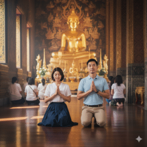 タイでは王室関係者の弔事期間中、国民が黒や白の服を着用して弔意を示す習慣があります。もし旅行のタイミングがこの期間に重なった場合は、寺院を訪れる際にも黒や白、グレーといった控えめな色を選ぶと、より敬意を示すことができます。