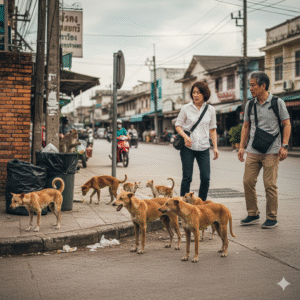 現地では、特に飼い主のいない犬や猫が都市部や観光地にも多く存在します。これらの動物すべてがウイルスを持っているわけではありませんが、一部が感染している可能性は否定できません。タイ国内では、現在でも狂犬病による死者が報告されています。