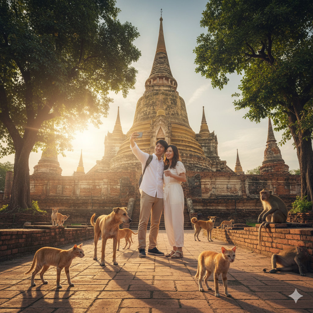 タイでは、お寺などで犬や猫が放し飼いにされている光景をよく目にします。彼らは比較的おとなしいことが多いですが、不用意に手を出したり、驚かせたりしないことが鉄則です。可愛いからといって、安易に触れようとするのは絶対に避けてください。
