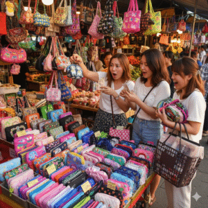 データベースの情報によれば、バスの小銭入れに良さそうな小物ポーチが80バーツ(約320円)、可愛らしい柄のバッグが260バーツ(約1,040円)といった具体例も挙げられています。これだけリーズナブルであれば、デザイン違いやアイテム違いで複数購入しやすいのも嬉しいポイントです。