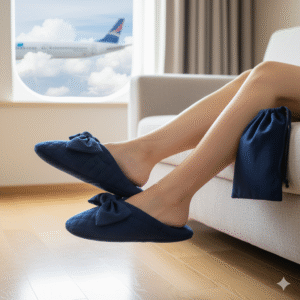 特に人気なのが、巾着付きの「携帯用スリッパ」です。二つ折りにしてコンパクトに収納できるため、旅行の際の機内履きやホテルでの室内履きとして重宝します。