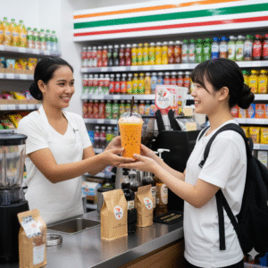 セブンイレブンでは、このタイ ティーを手軽に楽しめるボトル飲料や、セブンカフェ(ALL Café)のカウンタードリンクとして購入できます。ボトル飲料は様々なブランドから出ており、甘さ控えめのタイプも選べます。