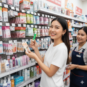 最大の特徴は、化粧水、美容液、日焼け止め、ファンデーション、さらにはリップやマスカラまで、ほとんどの商品が1回分や数日分の「サンプルサイズ」または「ミニサイズ」で販売されていることです。これにより、旅行中に忘れ物をしても安心なうえ、気になるタイのコスメブランドを非常に安価(25〜69バーツ程度)で試すことができます。