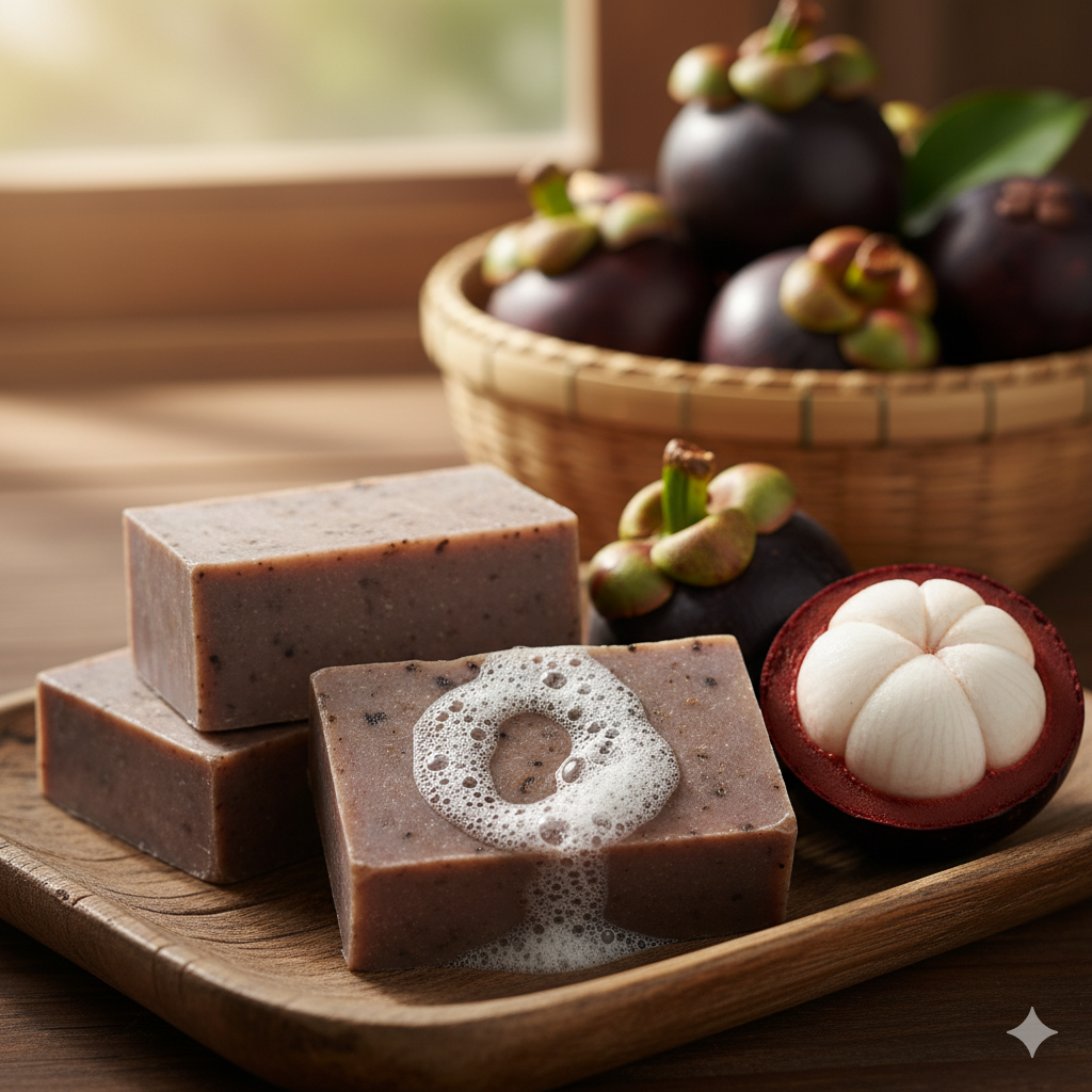 • タイのマンゴスチン石鹸は「果物の女王」の皮(ピール)を使用