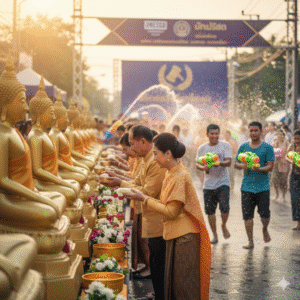 多くのタイ企業や政府機関は、このソンクラーン休暇に合わせて前後の土日を繋げ、大型連休(例:4月11日(土)~15日(水)の5連休など)とすることが一般的です。この期間は銀行や役所の窓口が閉まるため、旅行者は注意が必要です。