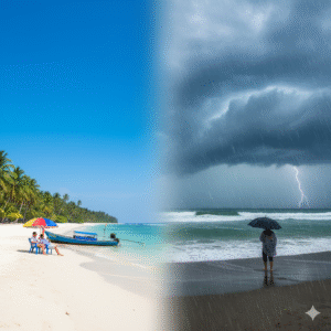 これまで主にバンコクを中心とした気候を説明してきましたが、タイは広大な国であり、地域によって季節のパターンが異なります。特に注意が必要なのは、南部リゾート地の気候です。