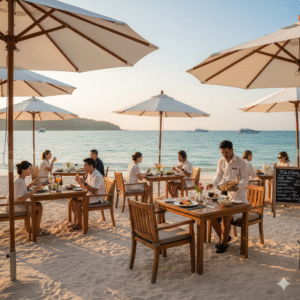 世界的なリゾート地ですね。そのため、観光客向けのレストラン、ホテル、ツアー、タクシー代などはバンコクより高く設定されています。特にビーチ沿いのレストランなどは、完全に観光地価格です。お店によっては日本と変わらない価格帯の場所も珍しくありません。バンコクのローカル物価の感覚で行くと、ちょっと驚くかもしれませんね。