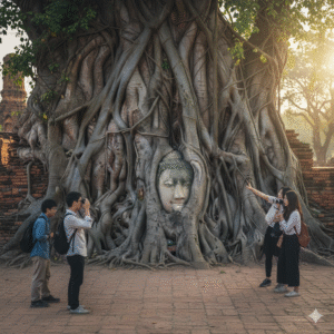 アユタヤに日帰りで行く場合、国鉄で安く行く方法(片道20B程度!)もありますが、学生さんならロットゥー(ミニバン)や現地ツアーを利用するのが手軽かもしれません。それでも往復交通費と入場料、現地でのトゥクトゥクチャーター代などを含めて1人1,000B~2,000B(約4,000円~8,000円)程度見ておけば安心です。