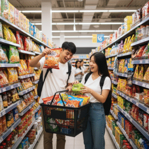 節約するなら、「Big C(ビッグシー)」や「Tesco Lotus(テスコロータス)」といった大型スーパーマーケットが絶対におすすめ。ドライマンゴーやプリッツ(ラーブ味など)、インスタントラーメン、タイティーの茶葉など、いわゆる「ばらまき土産」がローカル価格で大量に手に入ります。お菓子コーナーを見ているだけでも楽しいですよ。